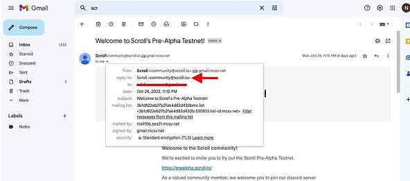 填写你的个人信息,包括邮箱,以太坊地址(建议填写一个小狐狸地址)。如果你的申请获得通过,你将收到一封来自来自 community@scroll.io 通知邮件。注意认准官方邮件,以免遭受邮件钓鱼**。