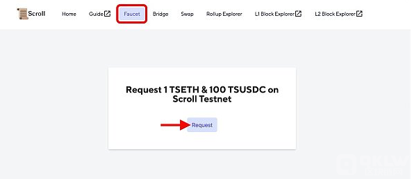 找到测试币水龙头(Request Faucet),单击请求发送测试币。
