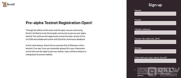 第一步,进入 Scroll 官网,然后找到测试申请注册入口: