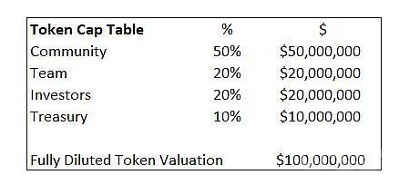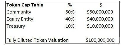 这家初创公司还决定将50%的代币分配给社区,10%分配给金库。剩下的40%将由投资者和团队按比例进行分配。由于股权实体拥有50/50的所有权,其余40%的代币分配也应该是50/50的分配。因此,理想的代币配置应该是20%的股权投资者和20%的团队。