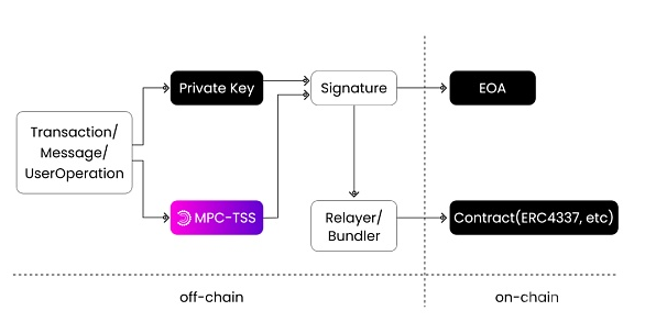 Particle 最终解决的是非托管方案做链下多方签名计算的问题,而链上部分就根据实际场景以及链上产品的实际成熟度提供 EOA 或者 AA 钱包方案。