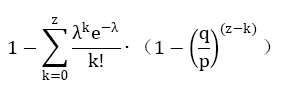 然后收款人将等待交易出现在首个区块中,然后在等到z个区块链接其后。此时,他仍然不能确切知道攻击者已经进展了多少个区块,但是假设诚实区块将耗费平均预期时间以产生一个区块,那么攻击者的潜在进展就是一个泊松分布,分布的期望值为: