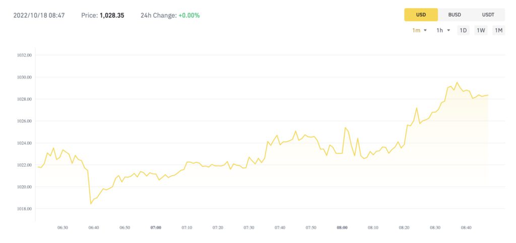 币安CMCTOP10指数,截稿前报价$1,028.35