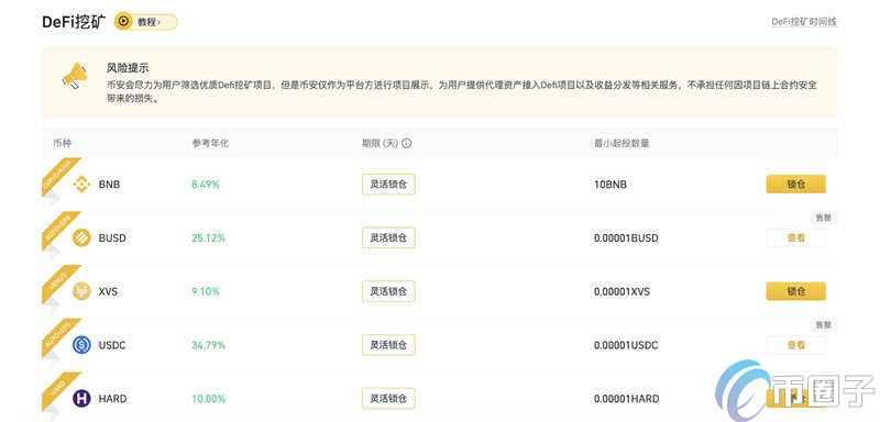 币安宝活动是由各类项目方与平台联合举办的不定期的高收益锁定存入数字货币活动。需要用户在平台锁定存入对应数字货币获得较高收益。一般活动需抢购,具体信息请关注币安公告。
