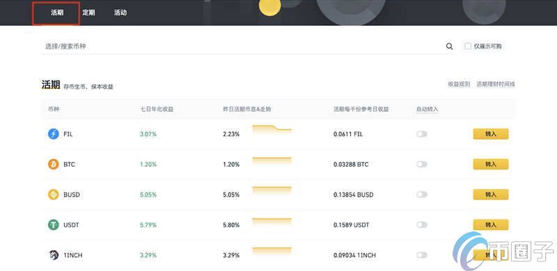 币安宝的产品包括活期、定期,以及相关活动产品。币安宝活期是通过存入您的数字货币至币安平台,随存随取。类似银行的活期存款一样,您可以获得对应的活期收益。