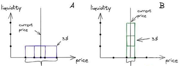 在 Uniswap v3 中,流动性提供者选择提供流动性的价格范围。一旦价格在此范围内,他将获得兑换费用的分成。流动性提供者希望其流动性头寸的价格范围尽可能宽。但是,流动性在此范围内按比例分配。因此,范围越广,每笔交易的兑换费用就越低。