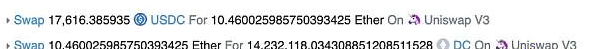 第二笔交易是通过 WETH 从 USDC 到 DogeChain 的交换,这是一笔价值约 16,500 美元的普通兑换交易。