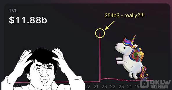 从上图官方报道的数据可以看到,TVL在2022年3月6日从5亿美元稳步增长到45亿美元。但发生了一些疯狂的事情,在2022年3月7日,TVL被报道为2540亿美元。这比整个以太坊网络有史以来最高的TVL还要多2.5倍,且在一天之内发生这样的变化。显然,这个数据的错误的。在接下来的几周,官方报道TVL为100-200亿美元。