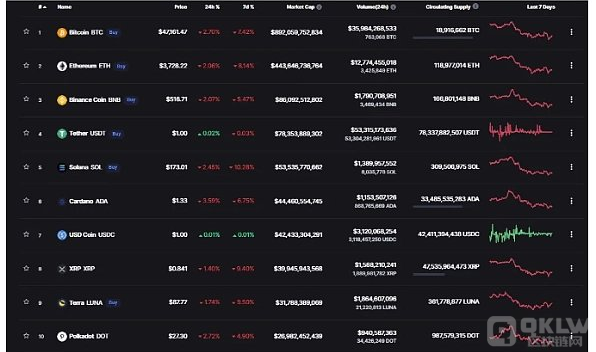 因此,从 2018 年开始,Greene 在每年 1 月初在 CoinMarketCap 上编制了一份排名前 10 位的加密货币清单,并随着时间的推移跟踪它们的表现。