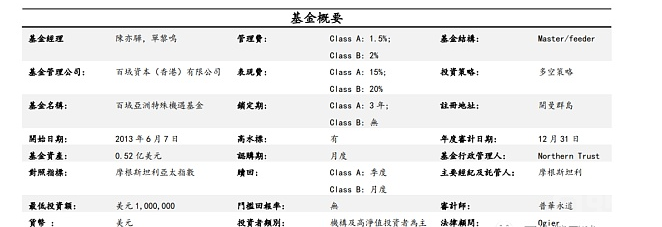 百域旗下主要经营业务为:百域亞洲特殊機遇基金。