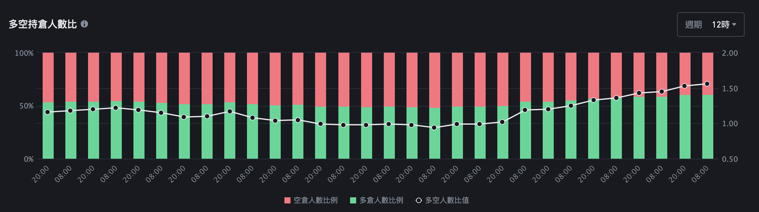 观测币安合约仓位多空比历史显示,许多投资人在合并结束后数小时后陆续平仓看空仓位,多空比回到1以上,在最近12小时达到1.56。