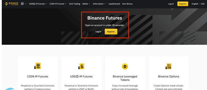 2. 如果您已经有币安帐户,请点击[登入],或点击[注册]以创建帐户。