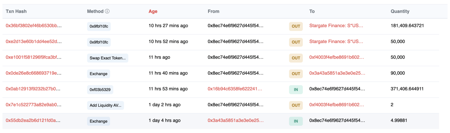 而得手钱包中的37万USDC,当中有9万跨链到以太坊转走,另外23万则通过跨链桥Stargate转至其他链,如今钱包只剩约2,711枚AVAX(等值$49,777.57美元)。