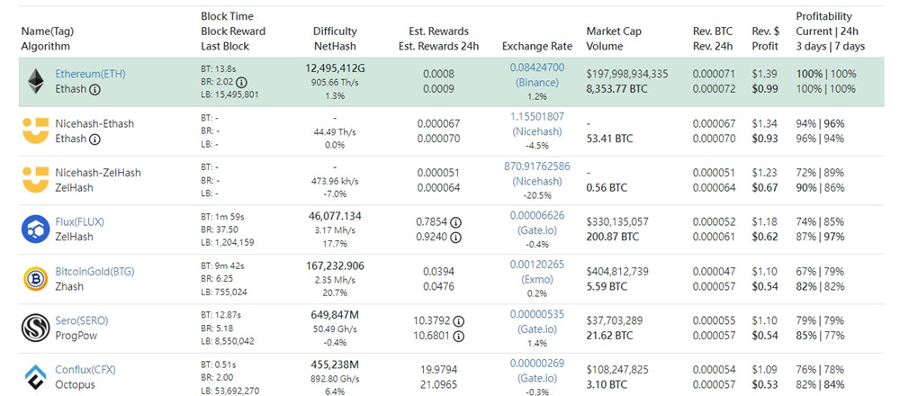 此外,其他币种的日均***利润也比ETC高,Flux日均***利润为0.62美元, *** G为0.54美元、CFX为0.53美元、AE为0.52美元、 *** CZ为0.52美元、SERO为0.51美元、ERG为0.58美元、AION为0.41美元、RVN为0.4美元。