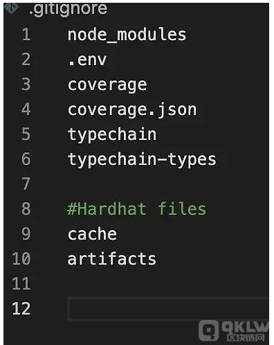 善用.gitignore文件,并将私钥配置信息放入.env文件内,避免被推送至Github,下图给出了使用hardhat生成DAPP项目时默认的。gitignore文件