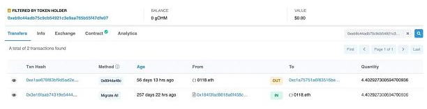 通过分析链上记录分析,受害者0118.eth在攻击者诱导下,调用gOHM Token智能合约中的approve方法,将gOHM代币的使用权限授予至攻击者控制的智能合约账户:0xA31573be292BD03d36DB137B6C2AB6eAA3d5e572,授权其转移的代币数量是8.8058个(精度为18位)。随后攻击者利用其控制的智能合约账户,将受害者账户中的资产全部转移至0xc1a7575开头的攻击者账户。