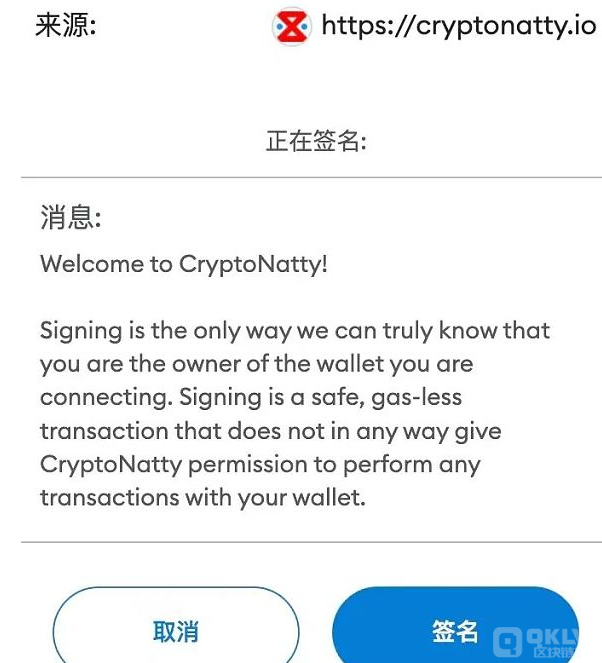 在站点向用户发起签名请求时,用户需要对站点和待签名数据的合法性进行认证,经确认无误后再执行签名操作,确保签名操作执行的链上行为符合用户预期。在遇到待签名消息为纯16进制不可读数据时,用户应坚持拒绝签名。