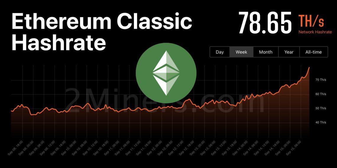 币圈子(120 *** C.COM)讯:以太坊合并预计将于今(15)日下午两点到三点左右发生。随着ETH工作量证明机制(PoW)即将迈入尾声,***们也随之大量转移,其中以太坊经典(ETC)的尤其受到瞩目。