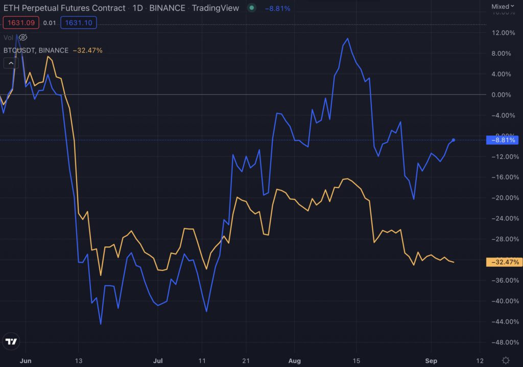 另外值得注意的是,另一家金融巨头美国银行(Bank of America,BofA),8月底发布的报告则指出,随着投资者寻求更好地了解合并的影响,以太坊从7、8月的价格涨势(期间涨逾100%)可能会持续消退。