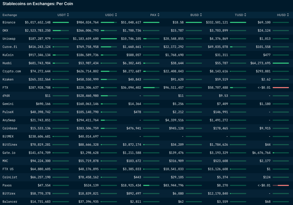 币安仍拥有全球交易所最多的USDT存量:50亿美金、BUSD则是高达185亿;其他交易所则是拥有很少的BUSD。