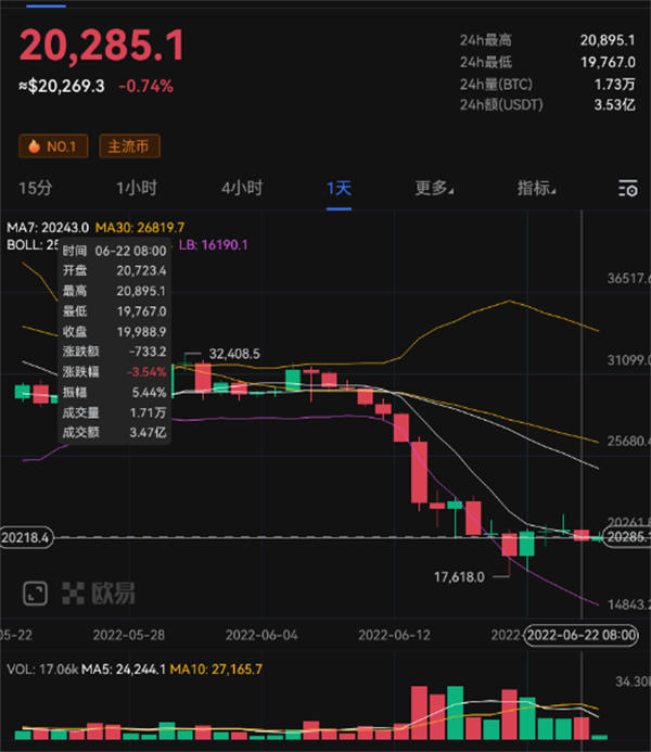 1、根据比特币okx交易软件消息,截至发稿6月23日11时,比特币价格20285.1美元一枚。此前,其报价一度跌至18000美元下方,24小时内最低触及17934.67美元。