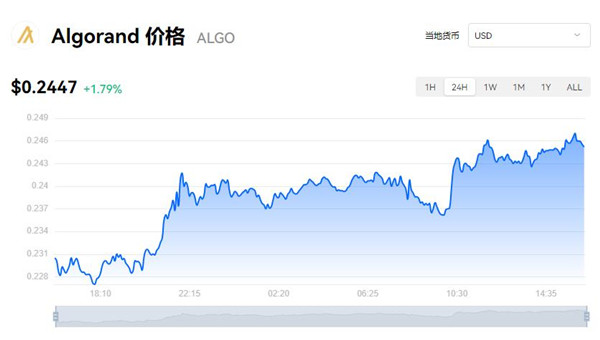 Algorand今天的价格是$0.2447,24 小时交易额为 $404.43万。Algorand的价格在过去 24 小时内上涨了 6.66%。我们会实时更新 ALGO/USD 的价格。目前,该币种市值排名为第 30 名,实时市值为 $17.56亿。其流通供应量为 6,547,171,111 ALGO,总供应量为 10,000,000,000 ALGO。