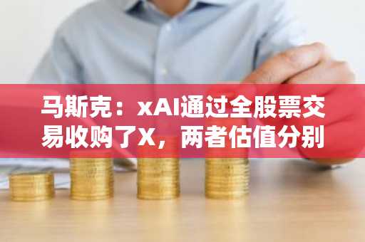 马斯克:xAI通过全股票交易收购了X,两者估值分别为800亿和330亿美元 作者:快讯 •更新时间:2025-03-29 08:18:12•阅读 615 马斯克在X发帖表示,xAI以全股票交易的方式收购了X。这桩交易对xAI的估值为800亿美元,对X的估值为330亿美元,即450亿美元减去120亿美元的债务。 本文内容由互联网用户自发贡献,该文观点仅代表作者本人。本站仅提供信息存储空间服务,不拥有所有权,不承担相关法律责任。