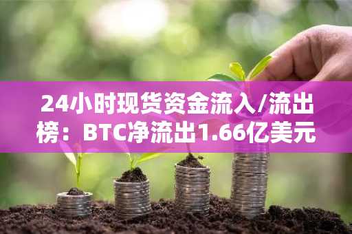 24小时现货资金流入/流出榜:BTC净流出1.66亿美元