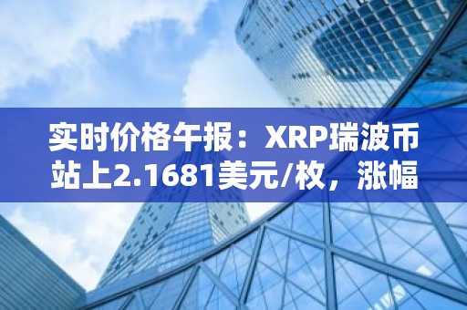 实时价格午报:XRP瑞波币站上2.1681美元/枚,涨幅达3.05%