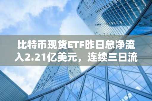 比特币现货ETF昨日总净流入2.21亿美元,连续三日流出后转为净流入