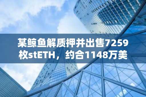 某鲸鱼解质押并出售7259枚stETH,约合1148万美元