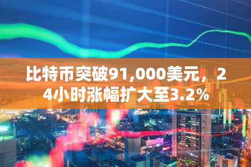 比特币突破91,000美元,24小时涨幅扩大至3.2%
