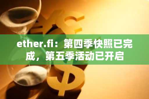BlockBeats 消息,2 月 1 日,以太坊再质押协议 ether.fi 在社交媒体上发文表示,第四季快照拍摄已完成,第五季活动开启。