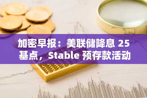 加密早报:美联储降息 25 基点,Stable 预存款活动第二阶段将于下周启动