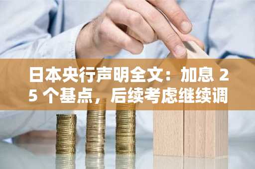 日本央行声明全文:加息 25 个基点,后续考虑继续调整