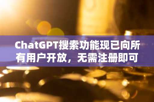 ChatGPT搜索功能现已向所有用户开放,无需注册即可使用 作者:快讯 •更新时间:2025-02-06 15:15:04•阅读 1781 OpenAI 官方发文宣布 ChatGPT 搜索功能现已在其官网向所有用户开放,用户无需注册账号即可使用该功能。 本文内容由互联网用户自发贡献,该文观点仅代表作者本人。本站仅提供信息存储空间服务,不拥有所有权,不承担相关法律责任。