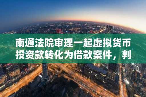 南通法院审理一起虚拟货币投资款转化为借款案件,判决驳回原告诉讼请求
