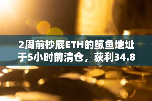 2周前抄底ETH的鲸鱼地址于5小时前清仓,获利34.8万美元