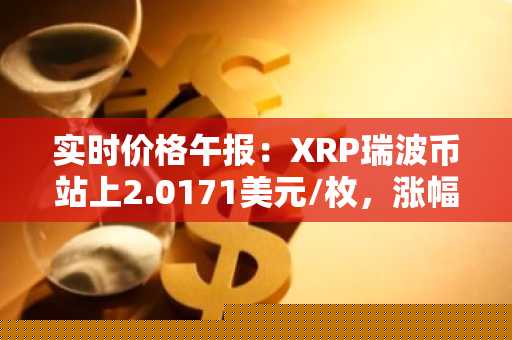 实时价格午报:XRP瑞波币站上2.0171美元/枚,涨幅达3.01%