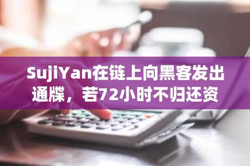 SujiYan在链上向黑客发出通牒,若72小时不归还资金将升级执法行动