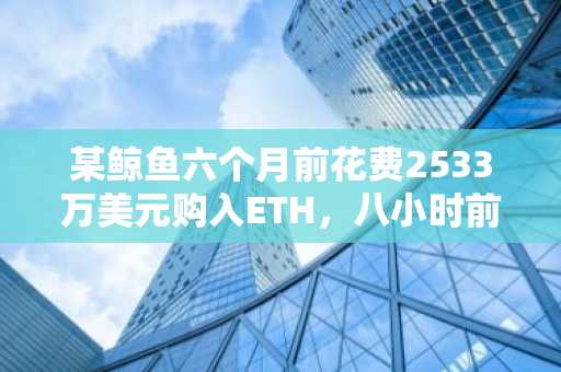 某鲸鱼六个月前花费2533万美元购入ETH,八小时前割肉亏损573万美元