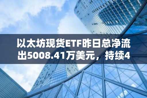 以太坊现货ETF昨日总净流出5008.41万美元,持续4日净流出