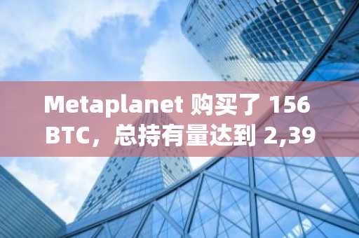Metaplanet 购买了 156 BTC,总持有量达到 2,391 BTC