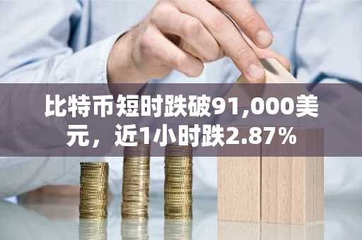 比特币短时跌破91,000美元,近1小时跌2.87%