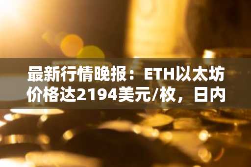 最新行情晚报:ETH以太坊价格达2194美元/枚,日内跌幅-1.01%