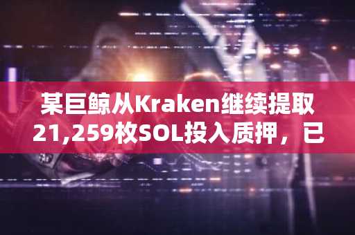 某巨鲸从Kraken继续提取21,259枚SOL投入质押,已累计质押约4333万美元