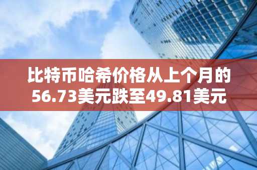 比特币哈希价格从上个月的56.73美元跌至49.81美元/PH/s