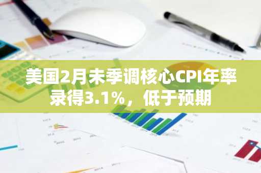 美国2月未季调核心CPI年率录得3.1%,低于预期