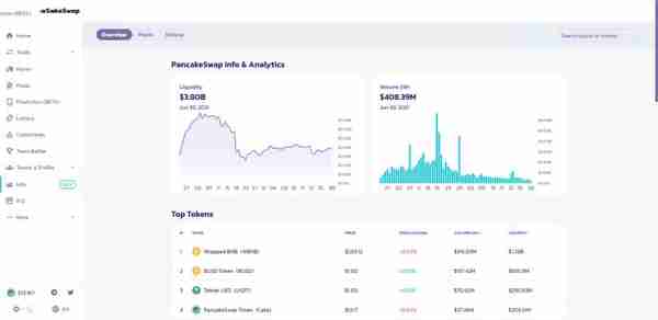 PancakeSwap的代币CAKE总量无上限,跟随区块产出,目前已上线的CEX有币安、Bithumb、MCX、Hotbit、BKEX,上线的DEX则有Pancakeswap、BSCswap。昨日,CAKE的24小时交易量已达到8.5亿美元,涨幅突破120%。