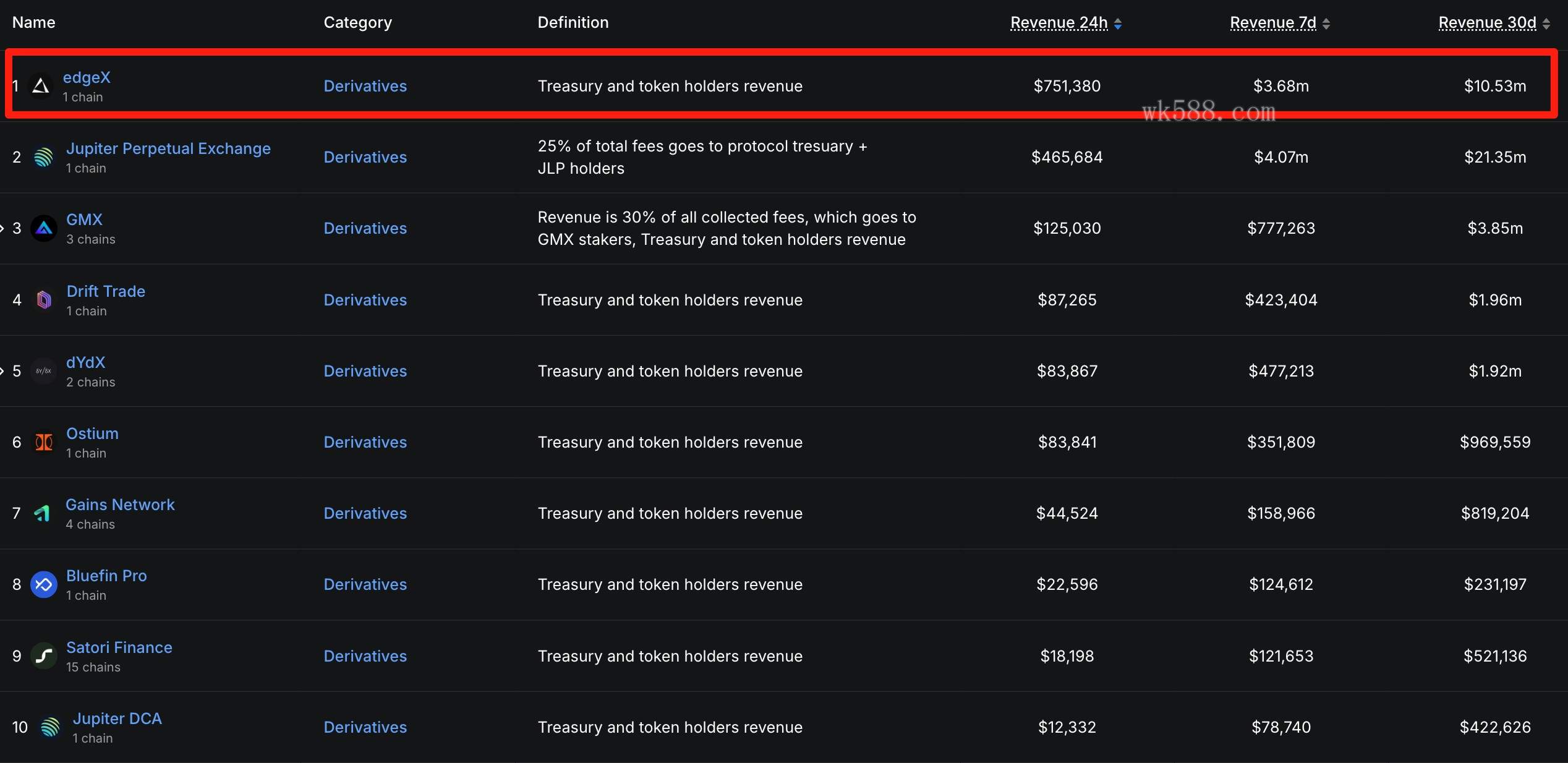 正如文章开头说的那样,产品的优质程度直接体现在收入上,所以对比 perp dex 赛道内部的收入对比,能更直接看出 edgeX 的凶猛。